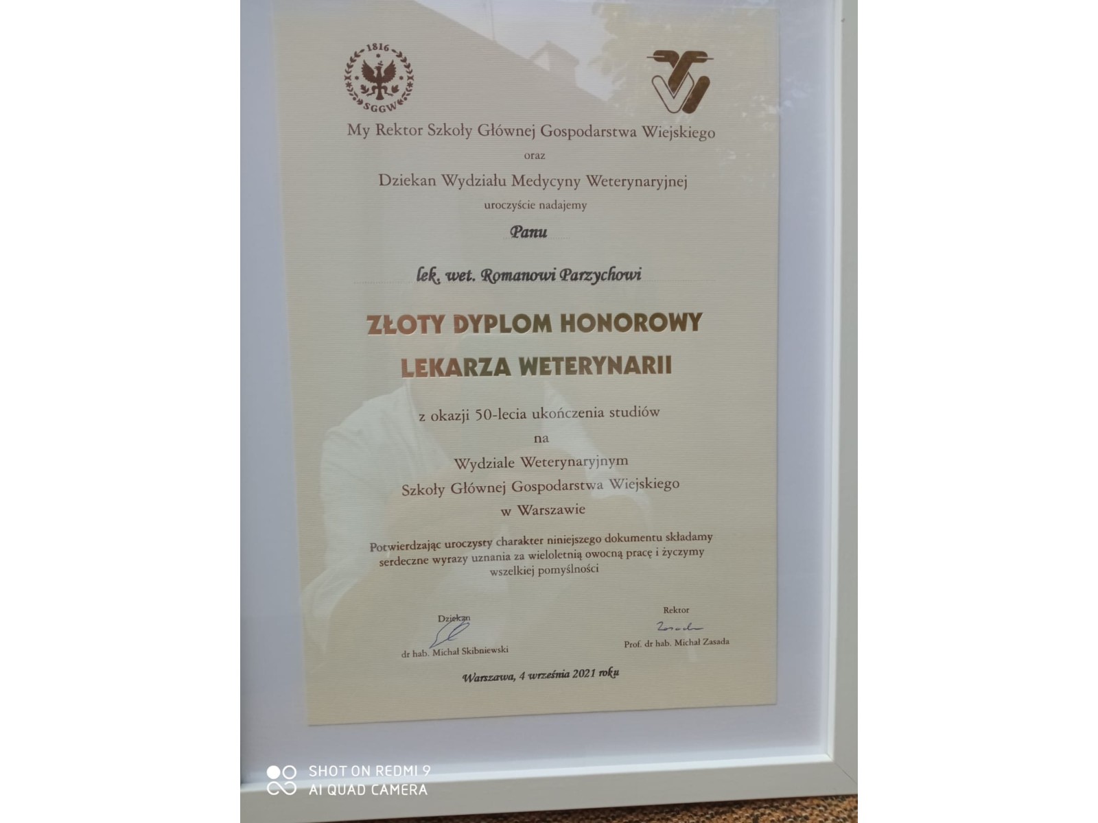 Upływa szybko życie jak w znanej piosence "i 50 lat minęło jak jeden dzień”. I tak dzięki inicjatywie, dużemu zaangażowaniu i konsekwencji prof.dr.hab. Włodzimierza Klucińskiego absolwenta naszego rocznika i byłego Rektora SGGW , 4 września 2021 r. odbyła się w Auli Kryształowej na kampusie ursynowskim SGGW w Warszawie uroczystość wręczenia „Złotych Dyplomów” lekarzom weterynarii absolwentom rocznika 1964-1970 i 1965-1971 Wydziału Weterynaryjnego tej Uczelni. Z mojego rocznika 1965-1971 uczestniczyło 19 Jubilatek i Jubilatów, w większości z rodzinami.